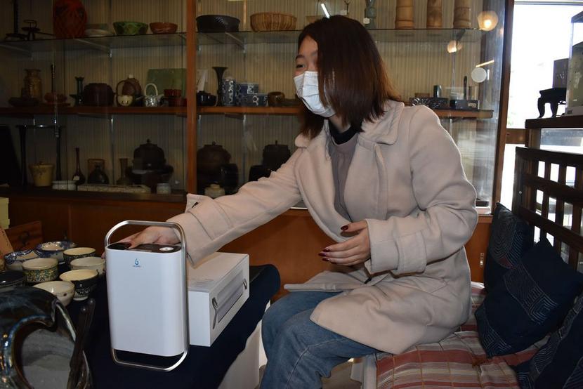 重量は1.6キロで簡単に持ち運びができる。人がいない閉店後の夜間などにオゾンを発生させる。この日は広谷理事長と同社の担当者が各店で操作方法を説明しながら置いて回った。