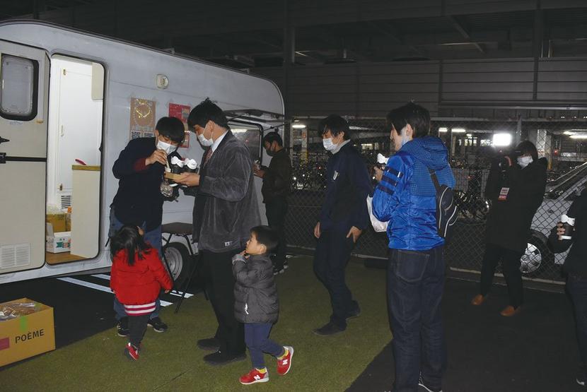 有楽マーケットは有楽町の駐車場が会場。キッチンカー2台を使い、下松市の米川で収穫したユズのホットゆずはちみつや、ゆずみそコロッケを作った。同大学の羽田司講師(30)は「学生に対して温かい目で見ていただけています。これからも続けたい」と話していた。
