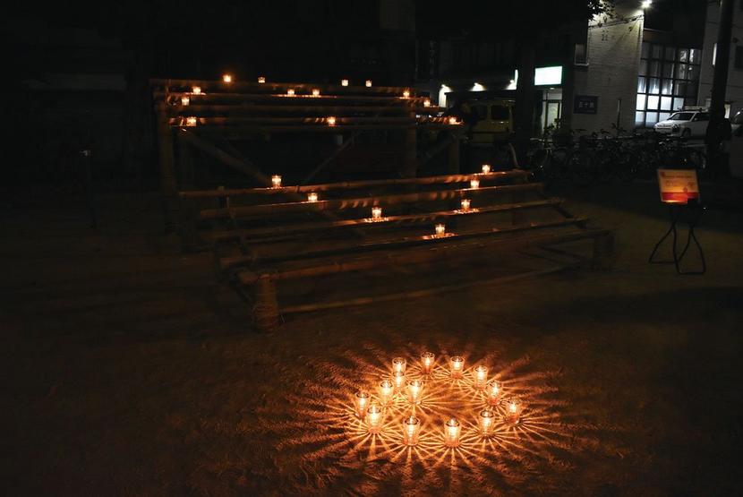 和紙を張って書道家が書いたタワーを内部からランプの明かりで照らしたり、ハートなどの形にオイルランプを並べたりと柔らかい明かりを生かした作品が並んだ。銅線をはんだ付けしてカップの形にして中にランプを置いたランプカップもあった。