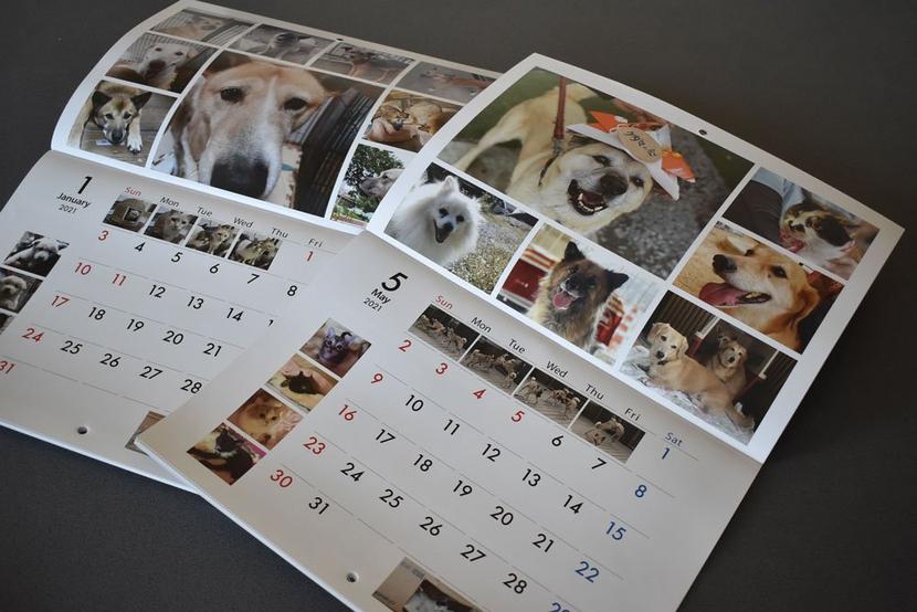 犬や猫の写真が並ぶカレンダー