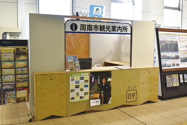 周南市の徳山駅新幹線口のエレベーター横にある観光案内所に9日、寒さ対策として周囲を囲むボードが取り付けられた。 この観光案内所は周南観光コンベンション協会...