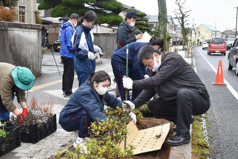 このプロジェクトとベンチ設置の新南陽まちなかベンチプロジェクトも3年がかりの事業。佐伯会頭は「花だけでなくハーブや高瀬茶にちなんで茶の木など特産品も植えて商業などの活性化にも結び付けたい」と張り切っていた。問い合わせは同商議所(0834-63-3315)へ。