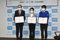 公園のせん定、伐採木 東ソーで発電の燃料に 市、和泉産業と3者が協定