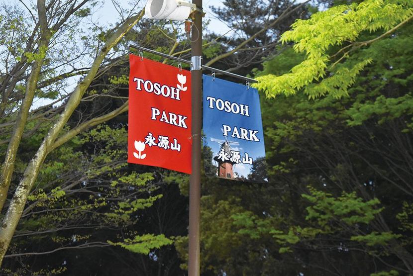 周南市の永源山公園の愛称が1日から「TOSOH PARK永源山」になり、公園の出入り口に看板と園内に旗が設置された。市のホームページなどの記載にも順次、愛称を...