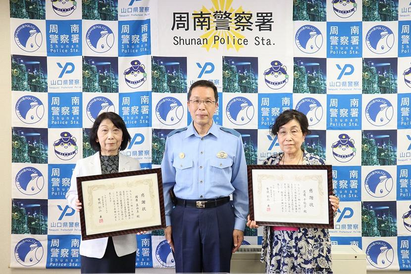 周南警察署で6月29日、警察運営に大きく貢献があったとして、同署協議会の委員を今年5月まで6年間務めた国広真由美さん(66)と渡辺千鶴子さん(76)に、杉山兼...