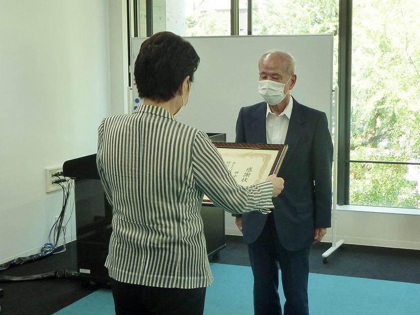 今回、自治会連合会長や関連した役職を後進に譲ることにして防犯協議会の監事も退任することから、感謝状が贈られた。