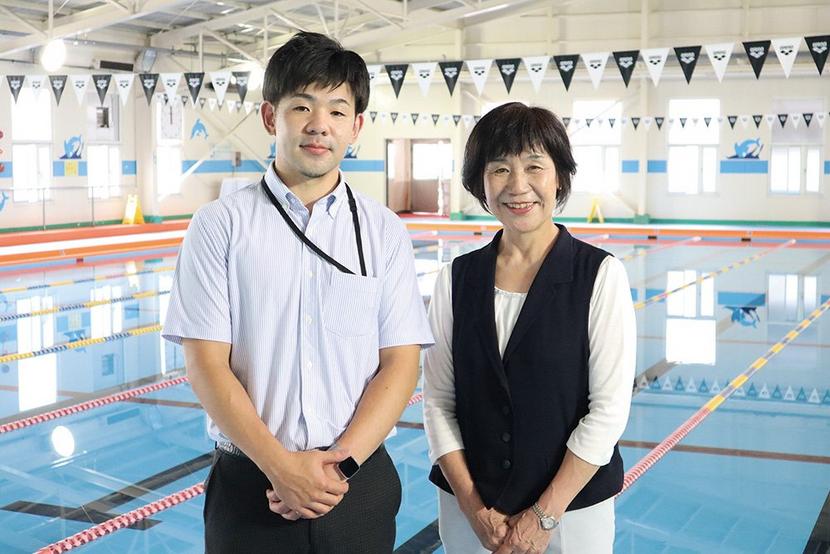 同クラブの相本美佐江社長と市体協の砂田優一郎主任は「通常は会員限定の利用なので親御さんはお子さんの練習を観覧するだけだが、夏休みのこのイベントで、親子一緒にプールで遊んでほしい」と呼びかける。
