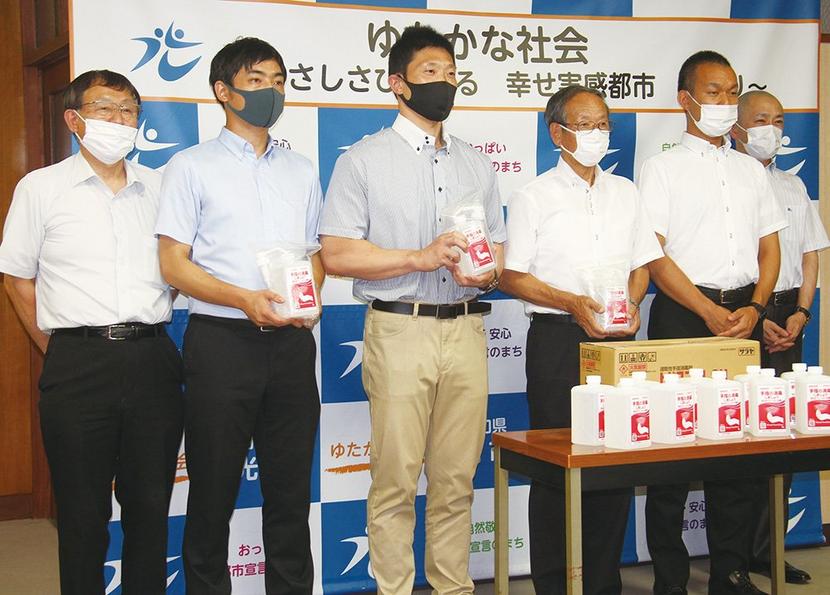 連合山口の東部地域協議会光地区会議(小西泰行代表、15組合)は8日、速乾性の1リットル入り手指消毒剤23個を光市に寄付した。 同協議会は、傘下の光、下松...