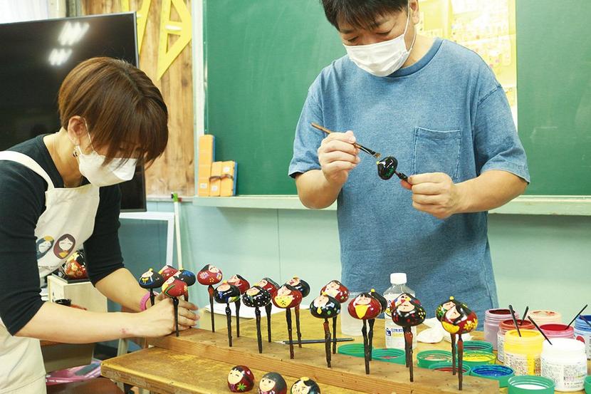 周南市大島の鼓南中(泉浩志校長、11人)の1年から3年までの7人が5日、美術科の授業で、山口市の中村民芸社の中村建さん(50)、理恵さん(45)夫妻を講師に、...
