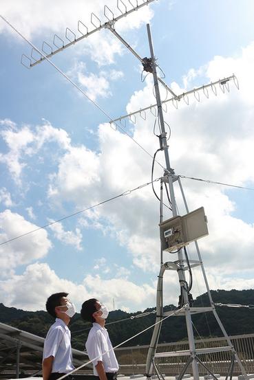 屋上のアンテナと河島さん、原谷さん