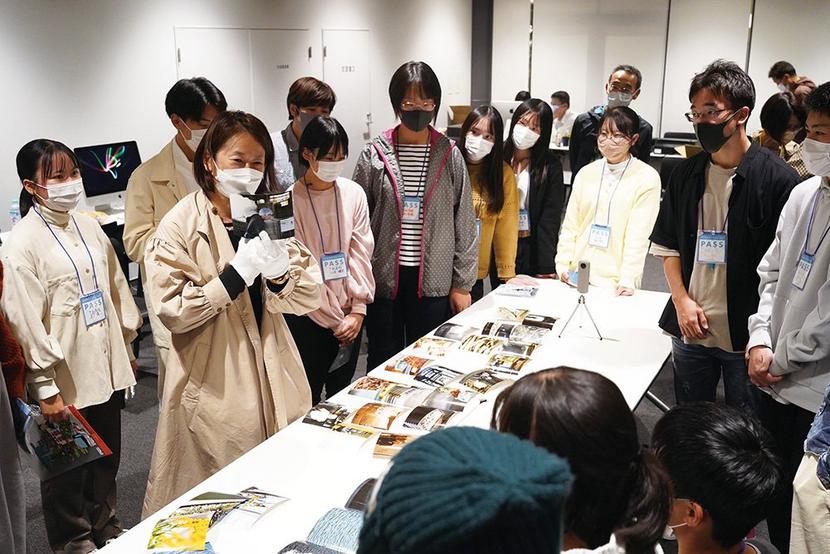 藤岡さんは「組み写真は説明しすぎないで俳句みたいなもの、タイトルの重要性、写真のトーンを合わせることがだいじ」と説明しながら40枚の写真から素早く写真を選び、生徒らから驚きの声が上がった。