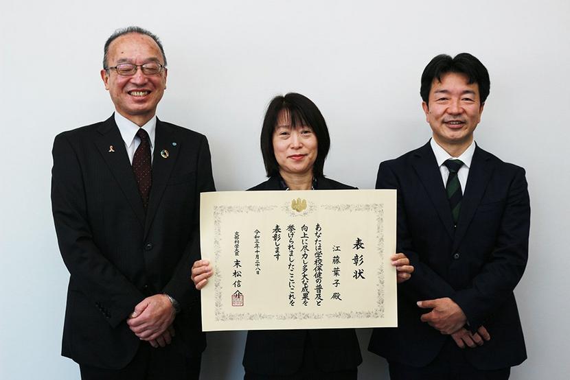 周南市の富田中(吉岡智昭校長、539人)の養護教諭の江藤葉子さん(55)が養護教諭制度80周年記念学校保健功労者に選ばれ、文部科学大臣名の表彰状が届き、厚東和...