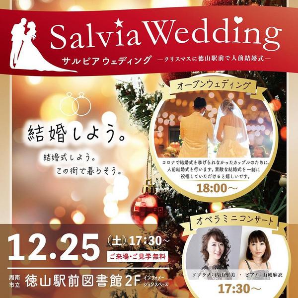 クリスマスの25日(土)に山口県周南市の徳山駅前図書館でブライダル業界の有志が、同市桜木の会社員、佐川仁さん(25)と寿々菜さん(25)夫妻の人前結婚式「サル...
