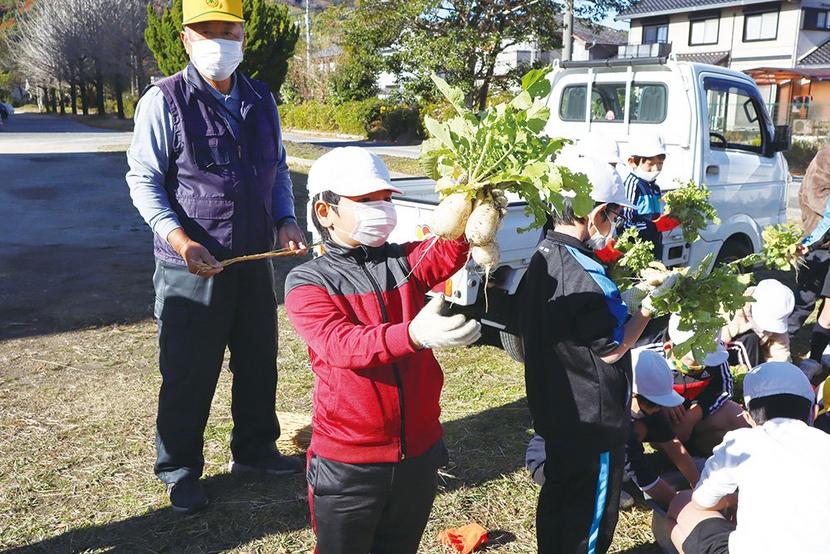 山口県周南市の福川南小(佐野英之校長、199人)で9日、3年の児童38人が校内の畑で育てた福川地区の伝統野菜「とっくり大根」を収穫した。 この取り組みは10...