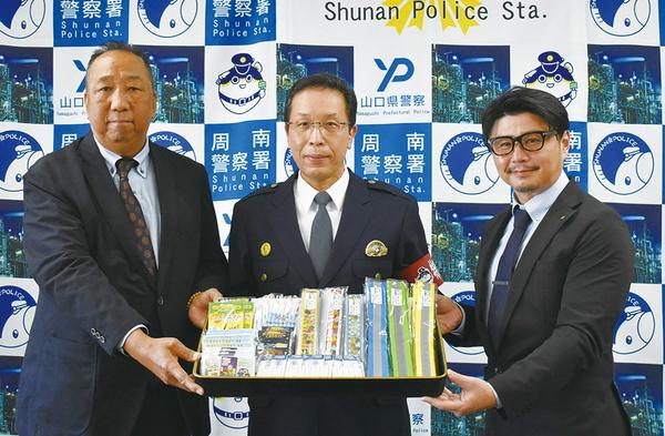 山口県の周南、下松、光市の運送会社などの県トラック協会周南支部(大嶋鉄雄支部長、142社)は10日、周南警察署に交通安全啓発グッズとたすき、自転車の車輪に取り...