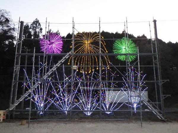 中須の冬空に花火輝く 4日〜・イルミネーション点灯