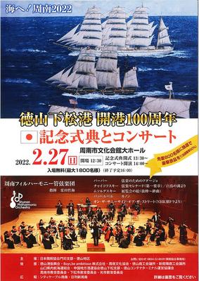 徳山下松港開港100周年を祝う記念式典と周南フィルハーモニー管弦楽団のコンサートが27日(日)午後1時半から山口県周南市の周南市文化会館大ホールで開かれる。 ...
