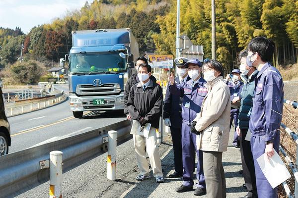昨年11月の車両の正面衝突など死亡事故が多発する山口県周南市大河内の国道2号で25日、交通安全の向上に向けた、有識者や交通・道路管理者、周南市による現地点検と...