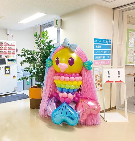 山口県周南市の徳山中央病院1階のドトールコーヒーの前に、バルーンで作られた「アマビエ」が設置された。入院、通院している患者や医療スタッフからも評判だ。寄贈した...