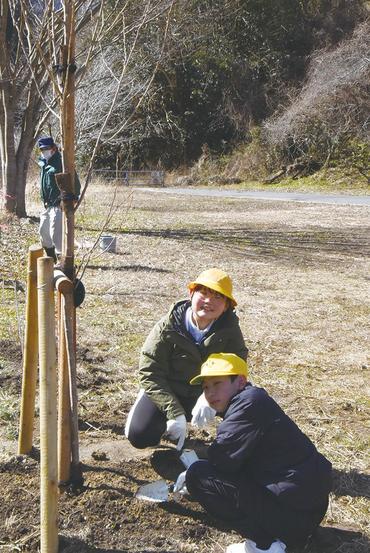 山口県周南市の和田小(田口真一校長、27人)の6年の2人が2月24日、島地川ダムのダム湖、高瀬湖の湖畔にある新平ケ原公園に卒業記念のオオシマザクラ1本とアジサ...