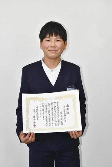 山口県周南市の孝女阿米顕彰会から親への孝養を賛えて阿米賞として表彰された徳山小6年、重本和正さん(12)が9日、厚東和彦教育長を表敬訪問した。 重本さんは、...
