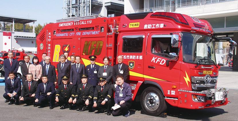山口県の下松市消防本部(原田保寿消防長)に最新鋭の救助工作車が導入され、10日に同本部で配備式が開かれた。 救助工作車は1999年に導入したものを更新する形...
