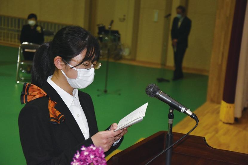 9学級の295人入学 末武中・県内最大の入学式 「温かみある賢さを」