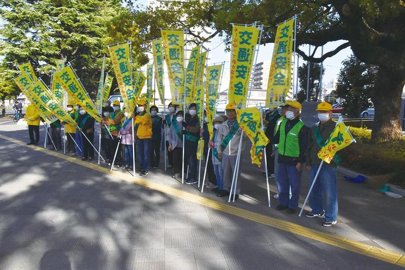 山口県周南市老人クラブ連合会・輝きクラブ周南(原田邦昭会長)の見守り委員会(岸村敬士委員長)は8日朝、市役所前で27人が参加して交通安全を呼びかけた。 同委...