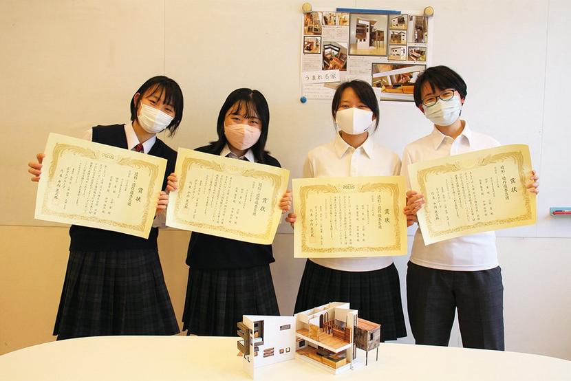 山口県周南市の徳山高専土木建築工学科3年、中谷怜奈さん(17)、田中奏(そう)さん(17)、江副聖さん(18)、筒本琴音さん(17)が設計した建築デザイン「う...