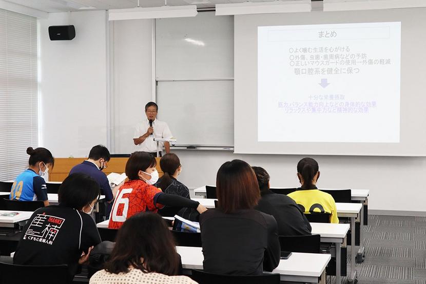 山口県周南市の周南公立大で2日、「スポーツ歯科医学とマウスガード」と題したセミナーが開かれ、同大のレスリング部やラグビー部の学生、山口銀行の女子ハンドボールチ...