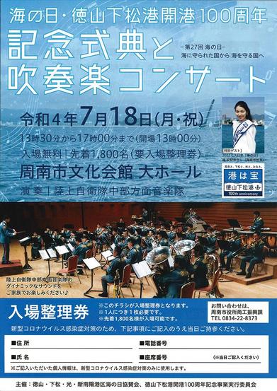 海の日・徳山下松港開港100周年記念式典と吹奏楽コンサートが18日(月・祝)午後1時半から5時まで山口県周南市の周南市文化会館大ホールで開かれ、伊丹市が拠点の...