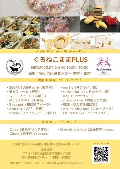 山口県周南市の櫛浜市民センターの講堂と2階和室でくろねこままPLUSが24日(日)午前10時から午後4時まで開かれる。 このイベントは3月に開催されたくろね...