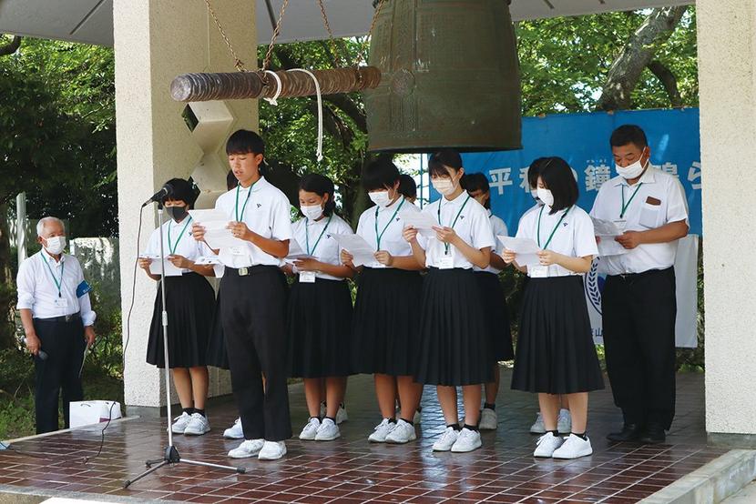 山口県周南市の徳山ユネスコ協会(原田茂会長)は終戦の日の15日、大津島の回天記念館で式典「平和の鐘を鳴らそう」を開き、ユネスコスクール加盟校の太華中生徒12人...