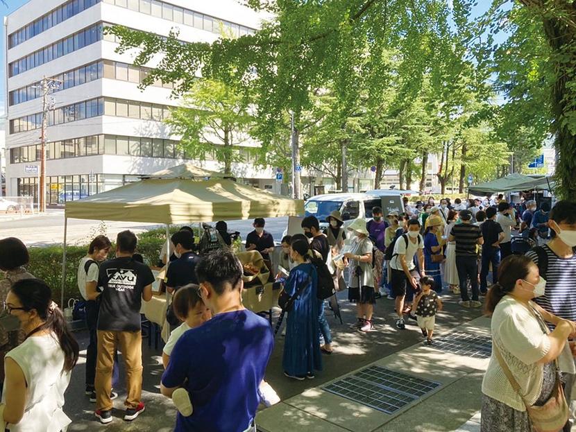 迫る台風11号の影響で開催前日まで天候が心配されたが、天気は快晴に恵まれ、並木通りの木漏れ日の下には多くの人が集った。御幸通を活用したイベントは珍しく、周南の新たな観光資源となることが期待される。