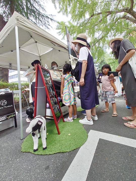 当日は23の県内農家や企業が出店。開始時刻の午前9時には多くの人が集まり始め、須金フルーツランドのなしとぶどうや山口市の萩野菜ピクルスのフルーツサンドなど10時前には売り切れる店舗もあった。光市のモンテエマーレなど4台出店したキッチンカーにも行列ができ、正午にはほとんどの商品が売り切れた。