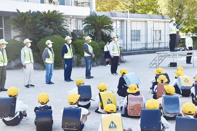 山口県周南市の久米小(奥原辰政校長、470人)で20日、全校生が見守り隊の住民と一緒に下校する「一斉下校」があり、同地区の藤井茂生さん(80)の防犯功労者とし...