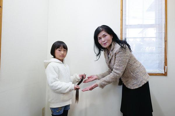 [新南陽若山LC]「髪の毛をあげられるのがうれしい」 金永さん(桜木小1)が3年間伸ばした髪贈る
