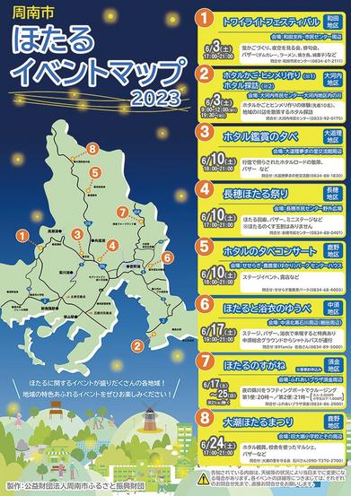 山口県の周南市ふるさと振興財団は市内のホタル関係のイベント8件をまとめた「ほたるイベントマップ」を4年ぶりに発行した。ホームページにも掲載している。 コロナ...
