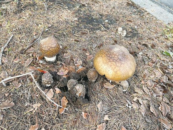 【周南市】岐山通の中央分離帯にキノコ 原因不明の大量発生