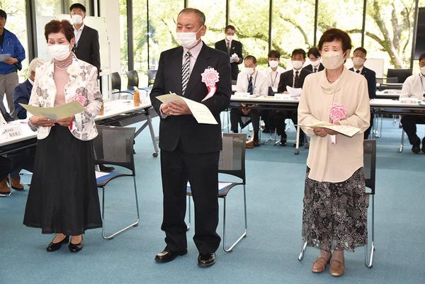 周南市徳山環境衛生連合会(大山政男会長)の会長表彰の表彰式が15日、市役所のシビック交流センターで開かれ、久米地区の東寿会(松岡豊会長)、菊川地区の髙杉浩史さ...