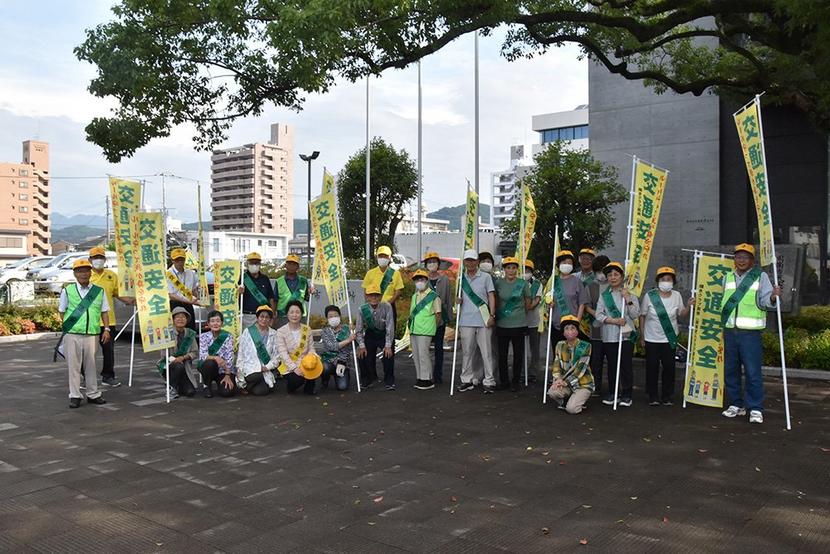 山口県周南市の周南市老人クラブ連合会・輝きクラブ周南(岸村敬士会長)の見守り委員会(委員長・岸村会長)は夏の交通安全県民運動が始まった11日朝、周南市役所前で...