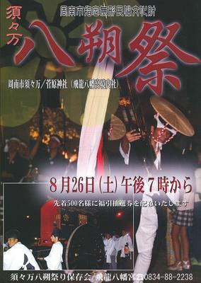 山口県周南市須々万の飛龍八幡宮(高階正宮司)の境内にある菅原神社の須々万八朔祭りが26日(土)午後7時から開かれる。 子ども神輿(みこし)、老人クラブ、婦人...