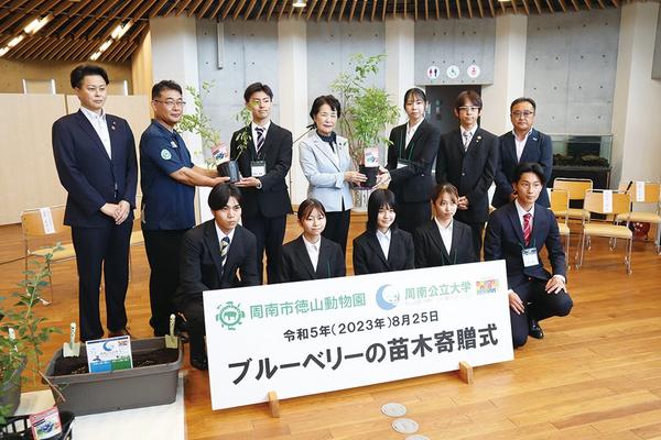 【周南市】[周南公立大]世界に広がれブルーベリー CO2吸収の苗木を徳山動物園に