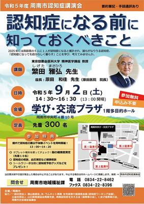 【周南市】「なる前に知っておくべきこと」 9月2日・認知症講演会