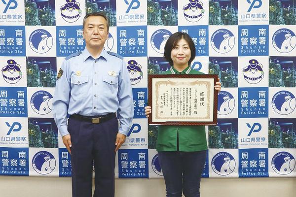 山口県警周南警察署(久保隆署長)は18日、うそ電話詐欺の被害を未然に防いだとして、同市のセブンイレブン周南二番町店に感謝状を贈った。 同店では7月25日午後...