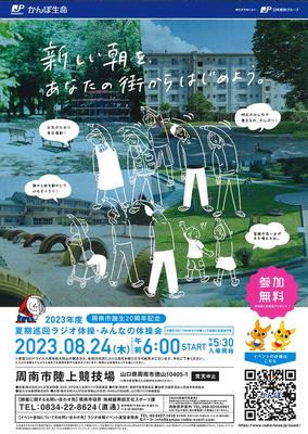 夏期巡回ラジオ体操・みんなの体操会が24日(木)午前6時から、周南市陸上競技場で開かれる。無料。午前6時半から「NHKラジオ第一」で全国に生放送する。 夏期...
