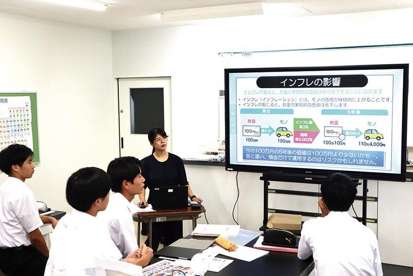 金融リテラシーについて講義する吉村さん(右から2人目)