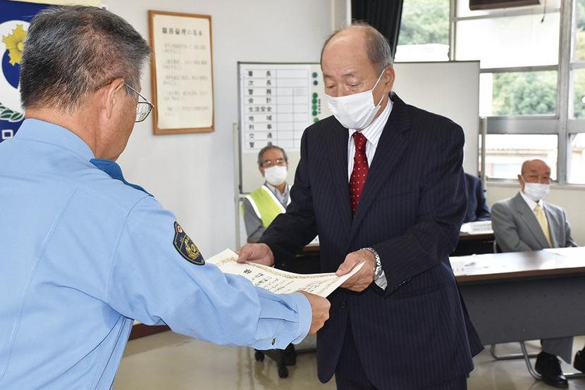 交通安全功労者・優良運転等表彰式が25日、下松警察署で開かれ、下松市瀬戸の下松交通安全協会常任理事の内冨芳隆さん(72)に優良運転者として中国管区警察局長、中...