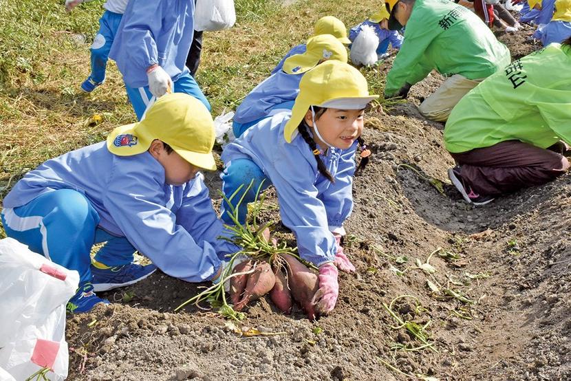 芋を掘る園児