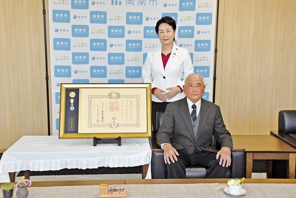 秋の叙勲で旭日単光章を受章した伊藤禎亮さん(79)が22日、市役所を訪れて藤井律子市長に受章を報告した。和田地区の林自治会長を昨年3月まで通算36年間務め、そ...